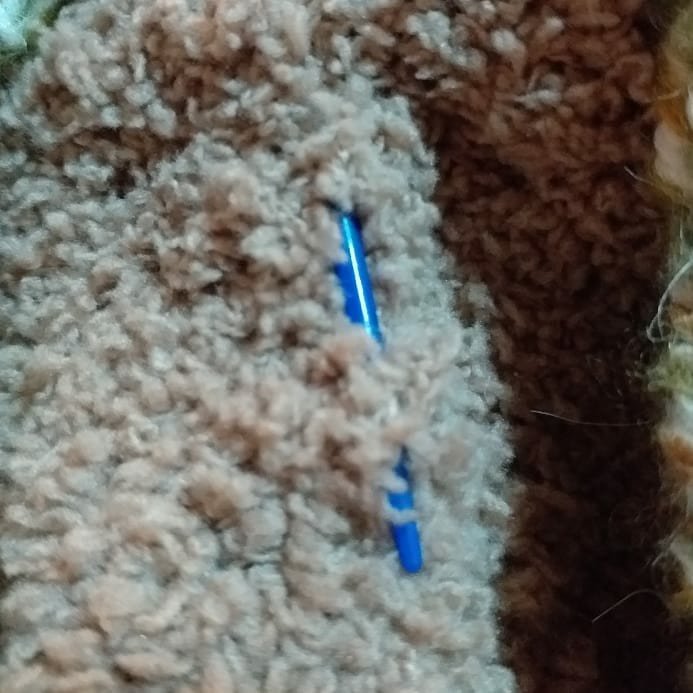 Cosemos por el revés la parte de peluche, con aguja lanera a punto de lado. No queda exacto porque no se ven los puntos, pero no se nota. Dejar los cabos por dentro para que no se vean y por si la labor necesita ceder un poco.
